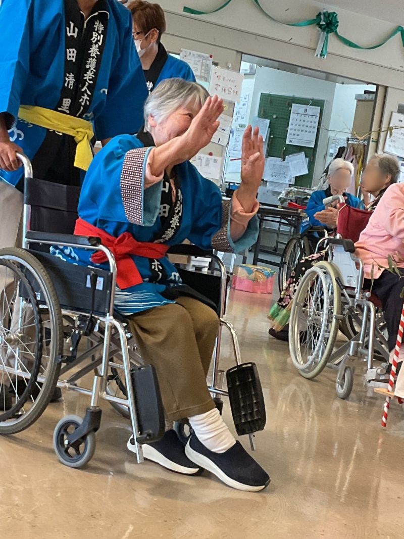 炭坑節や名古屋囃子など、皆さんご存じの曲を選曲しました。車いすの方にも踊りの輪に加わって楽しんでいただきましたよ。