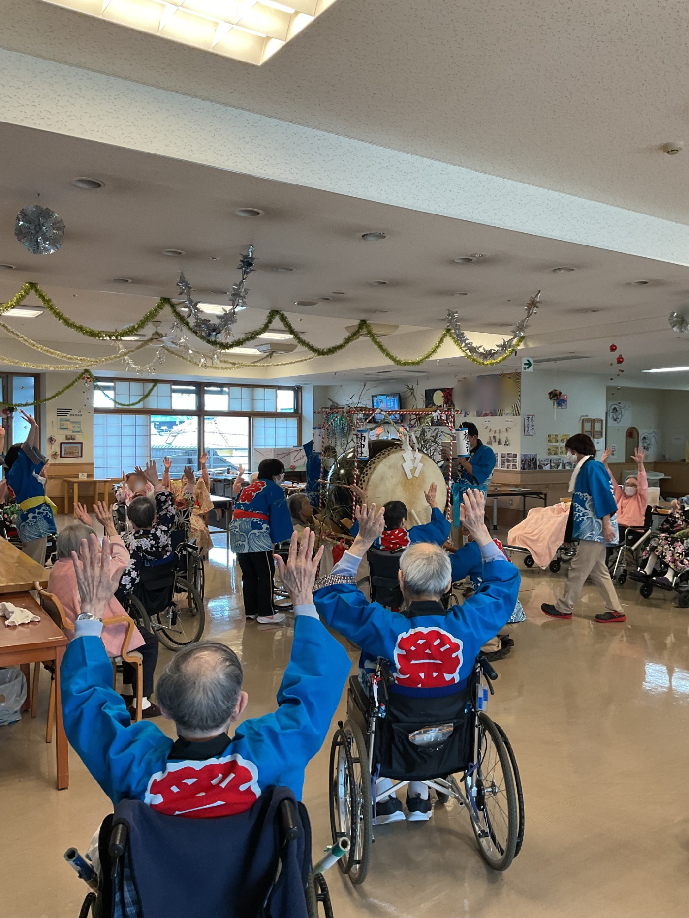 午後からは、フロアに大太鼓を持って上がり、盆踊りで盛り上がりました。