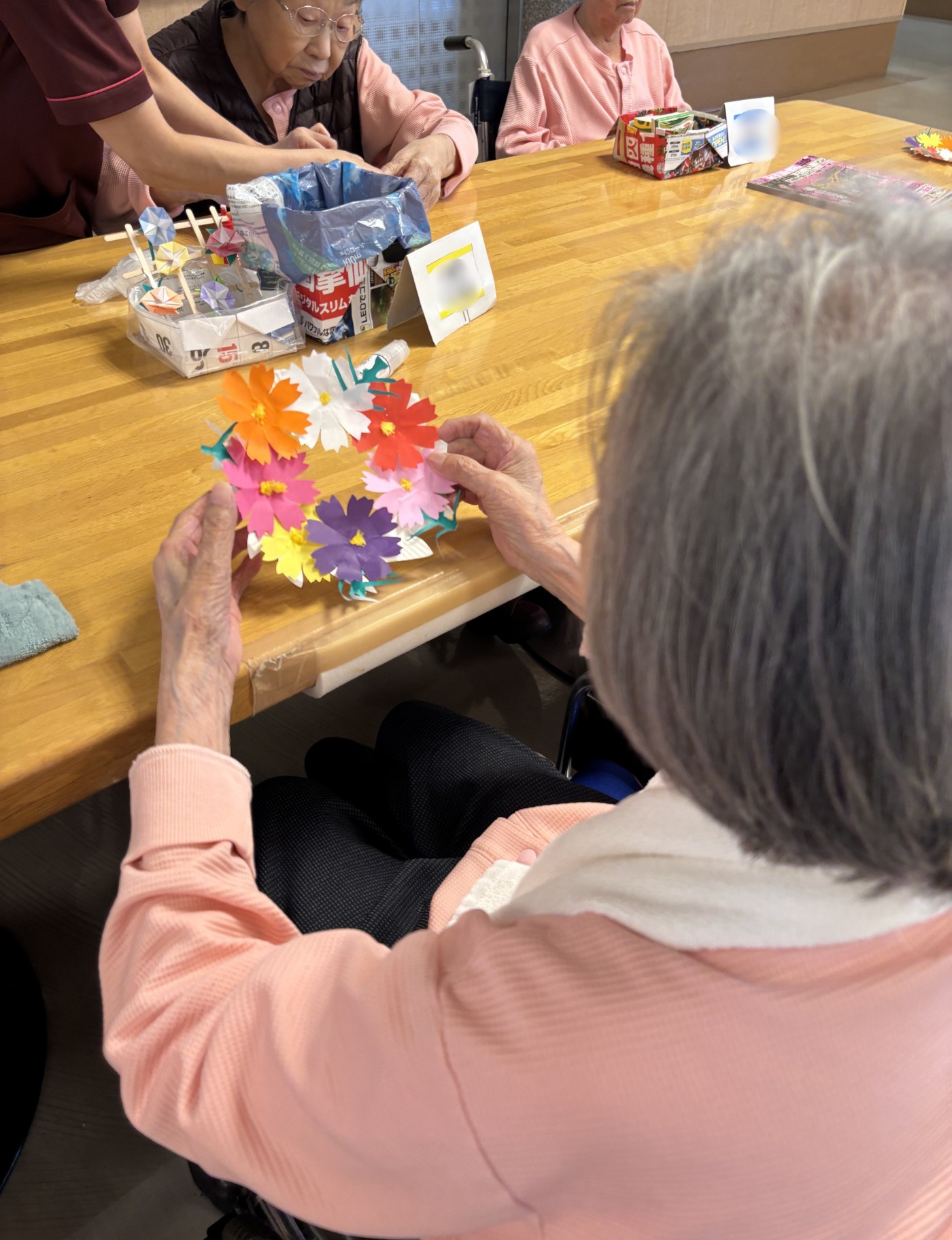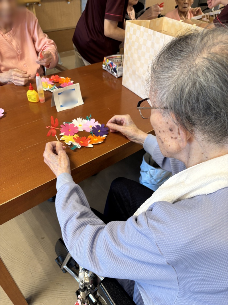 台紙の好きな位置にコスモスの花を貼っていただきました。