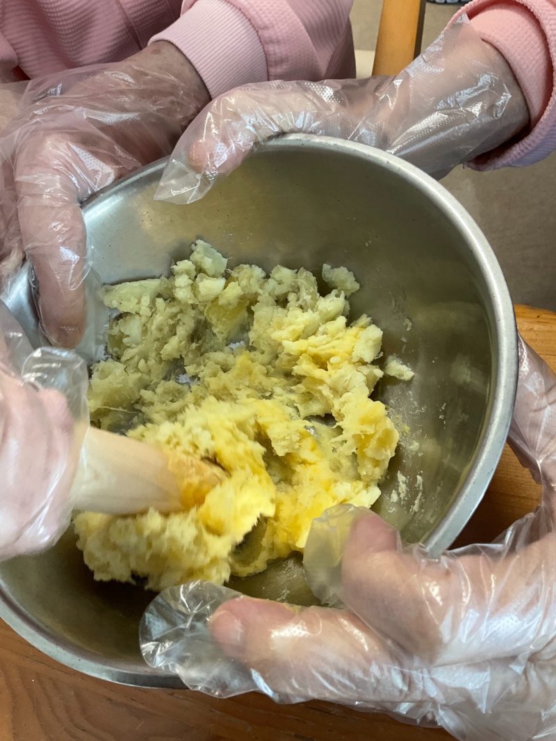 今日初めてスイートポテトを作った方もいらっしゃって「潰す作業がとっても良かった」と、楽しんでくださったご様子です。来月も楽しみになさってくださいね~。