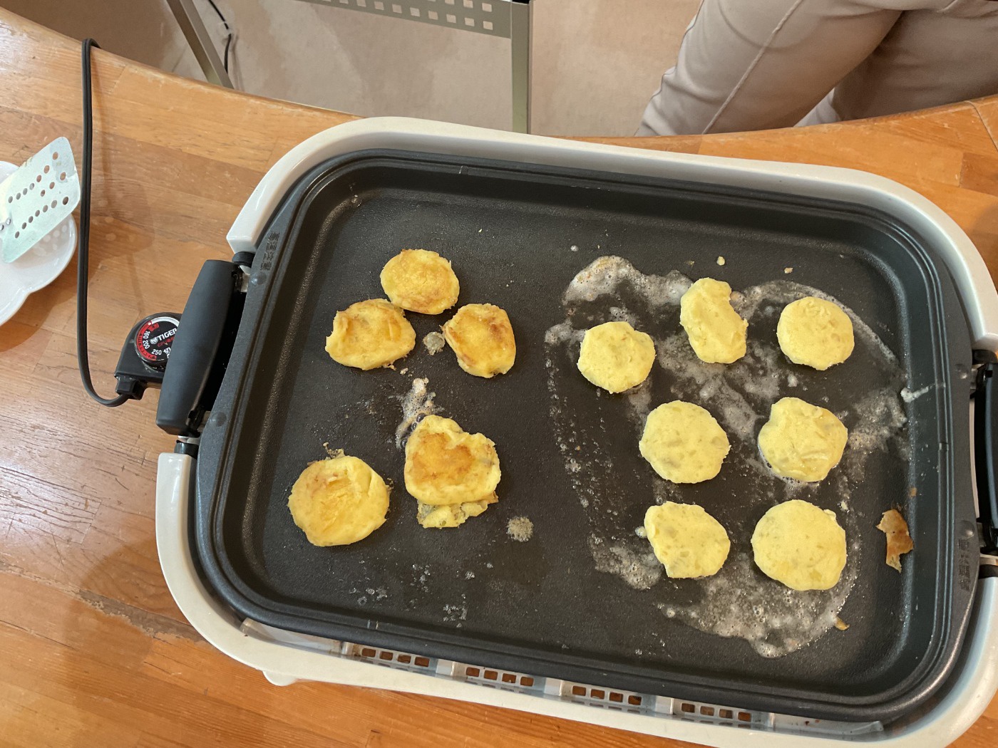 今回はオーブントースターではなく、ホットプレートで焼いて「焼きスイートポテト」にしましたよ。