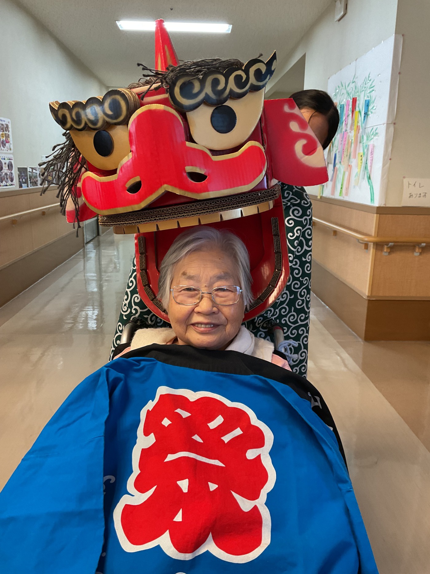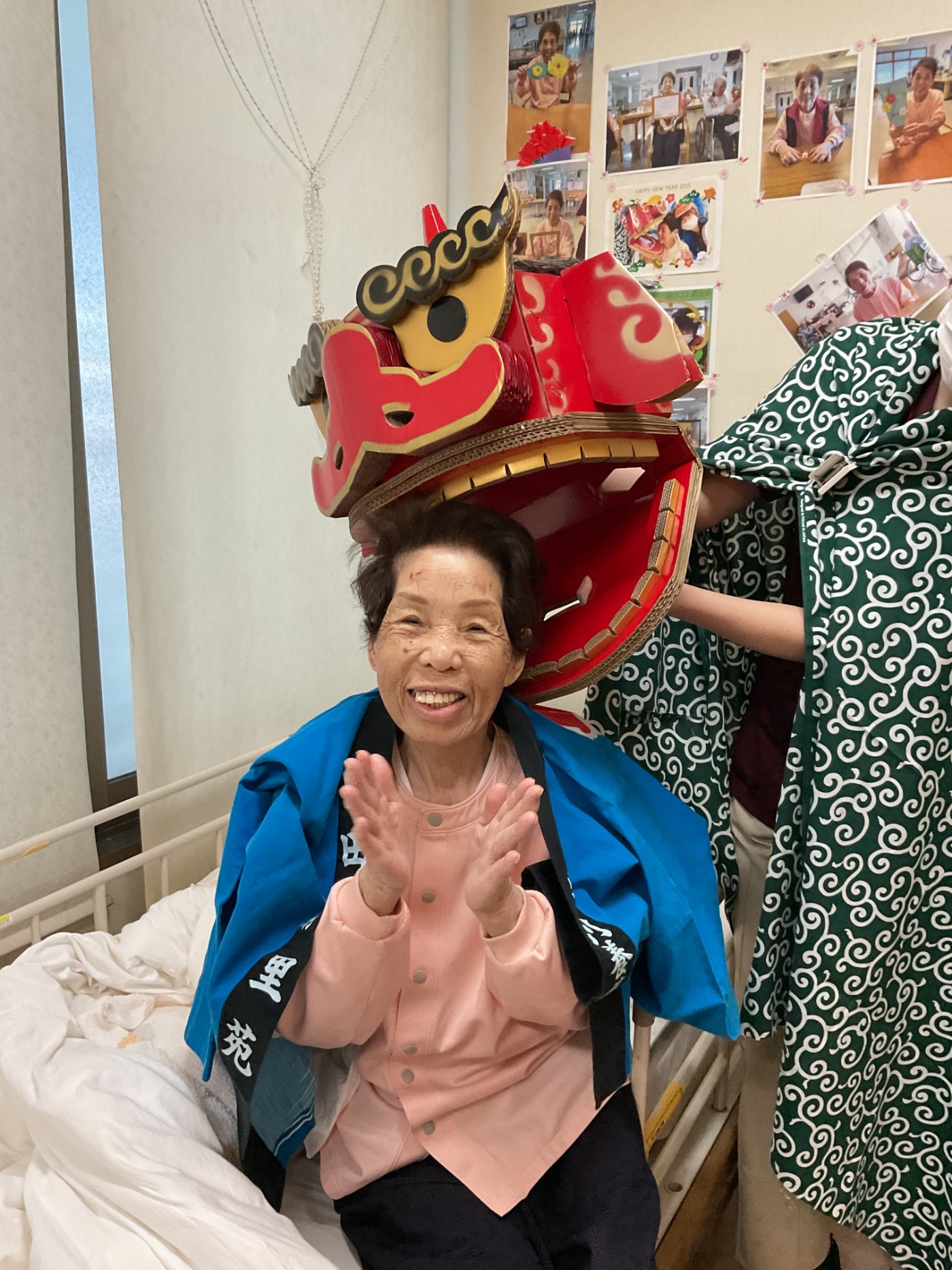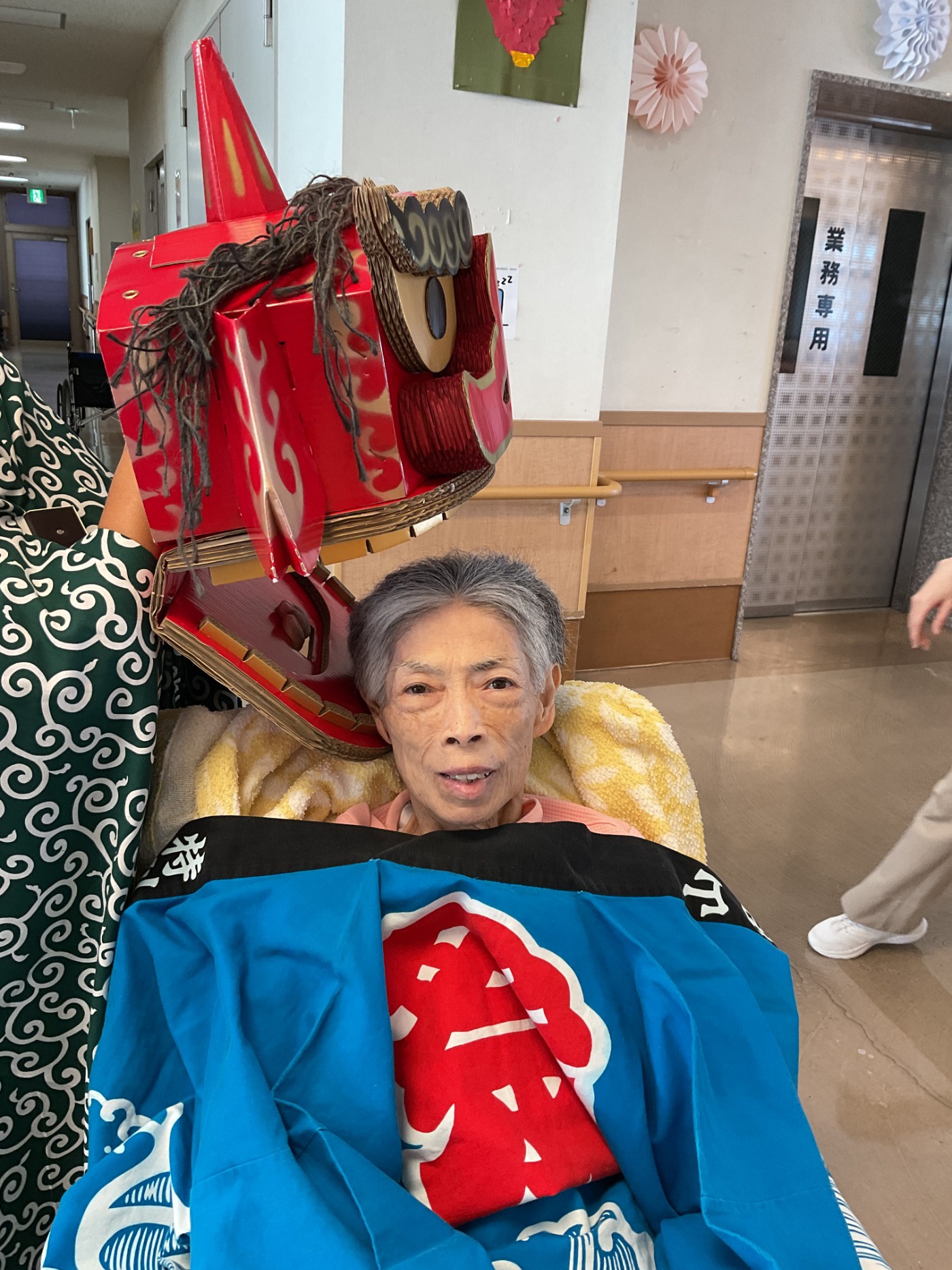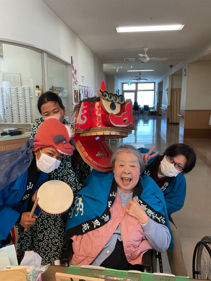 元日の午前中に各フロアをお獅子がまわりました。 皆さんの厄除けと無病息災を祈願してガブリ。とても楽しんでいただけた様で、素敵な笑顔をたくさん見せていただけました。