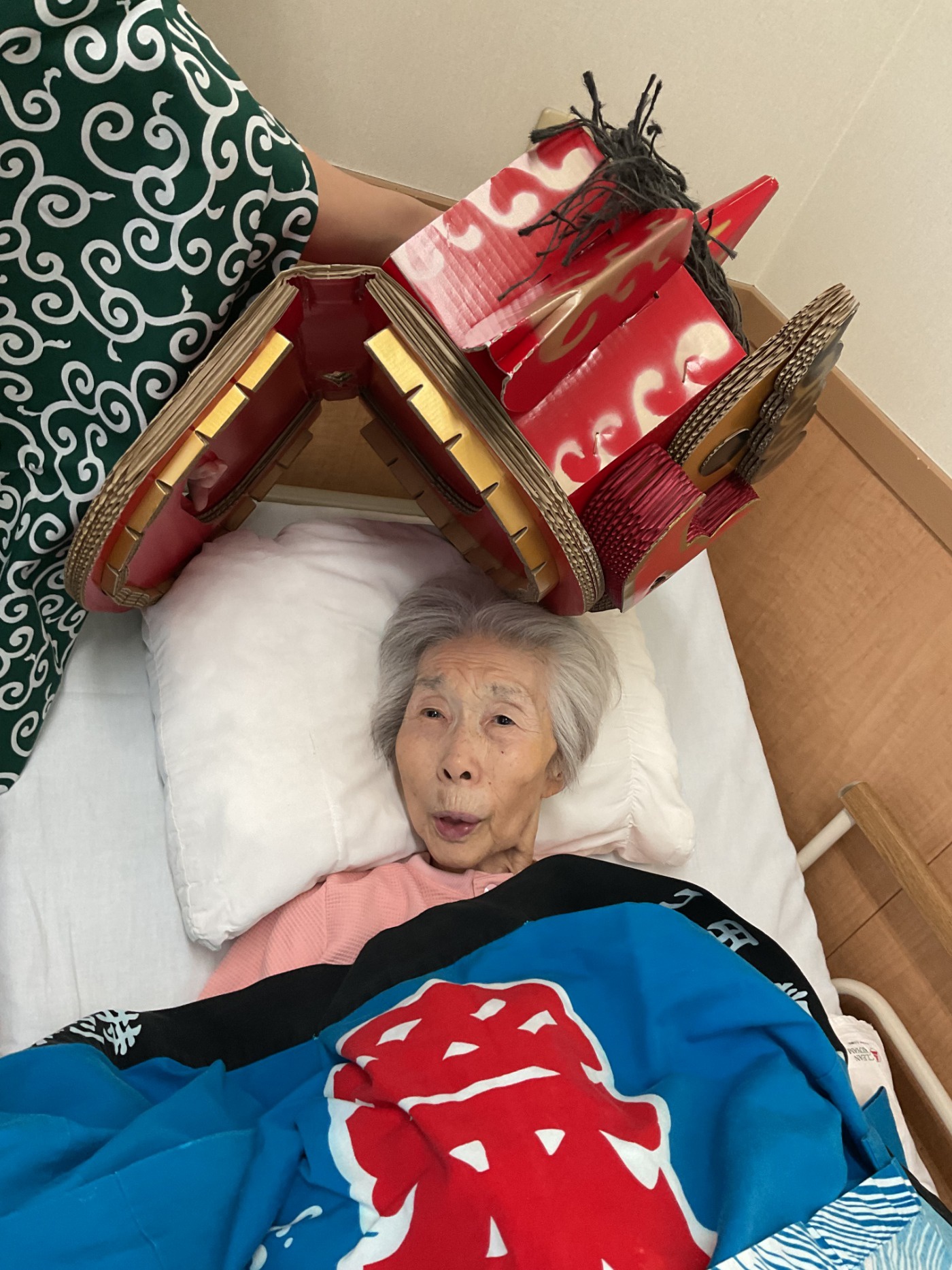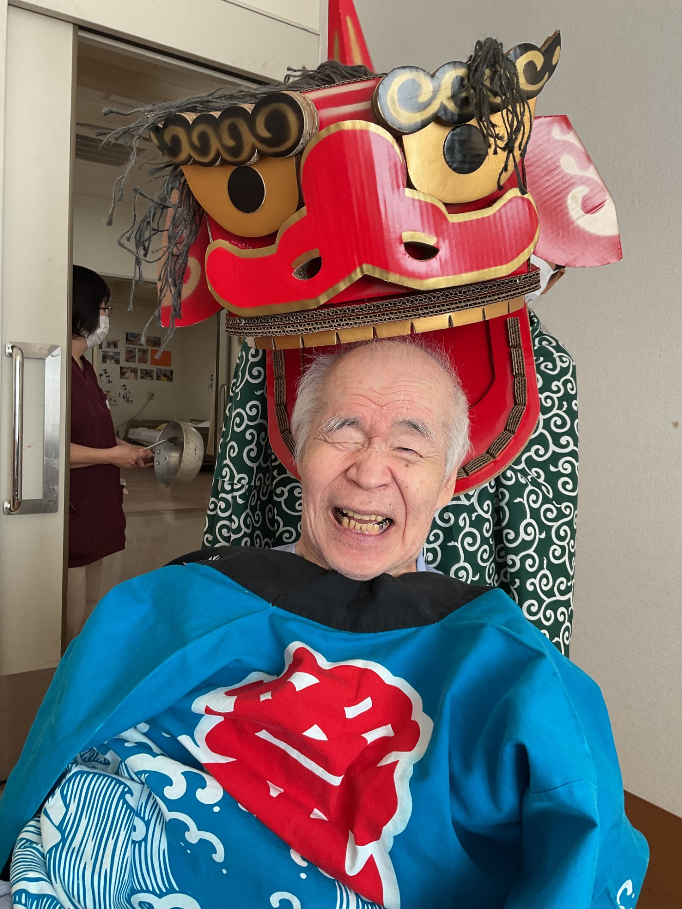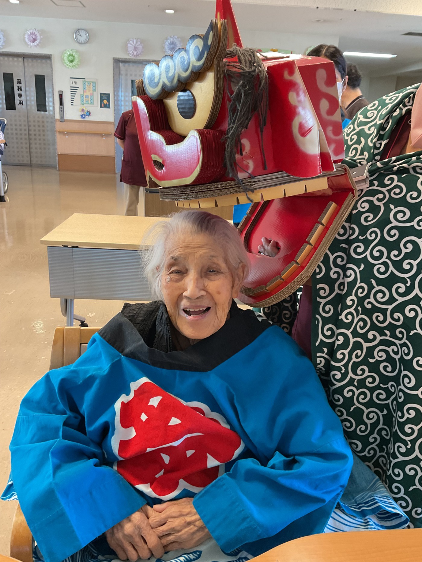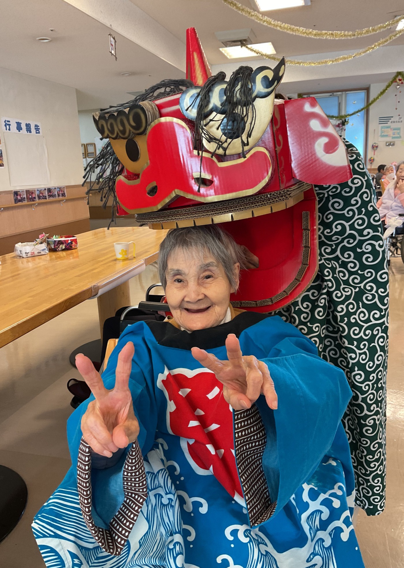 元日の午前中に各フロアをお獅子がまわりました。 皆さんの厄除けと無病息災を祈願してガブリ。とても楽しんでいただけた様で、素敵な笑顔をたくさん見せていただけました。