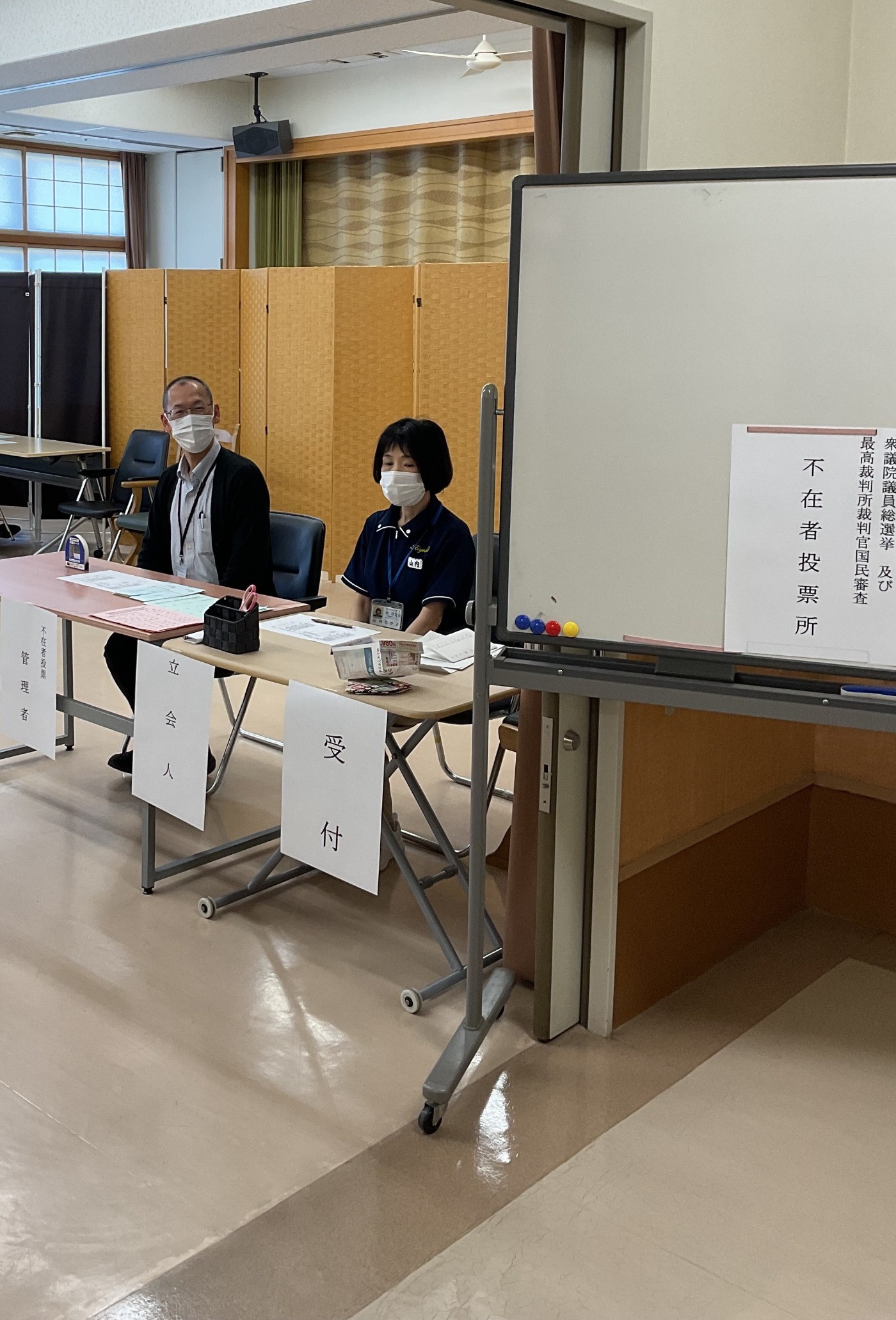 今日の午前中に、不在者投票を希望した方に投票をしていただきました。