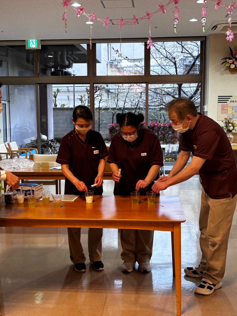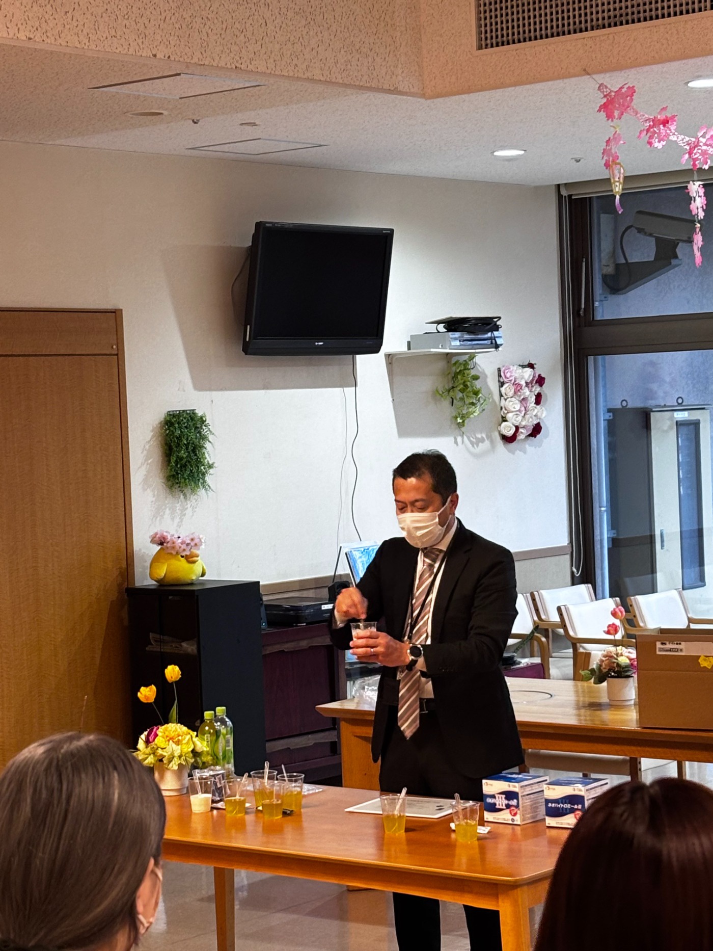 飲み込みをスムーズにするためのトロミ剤について、先生にお越しいただき勉強をしました。
