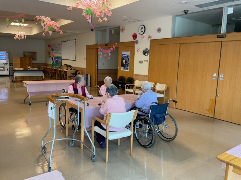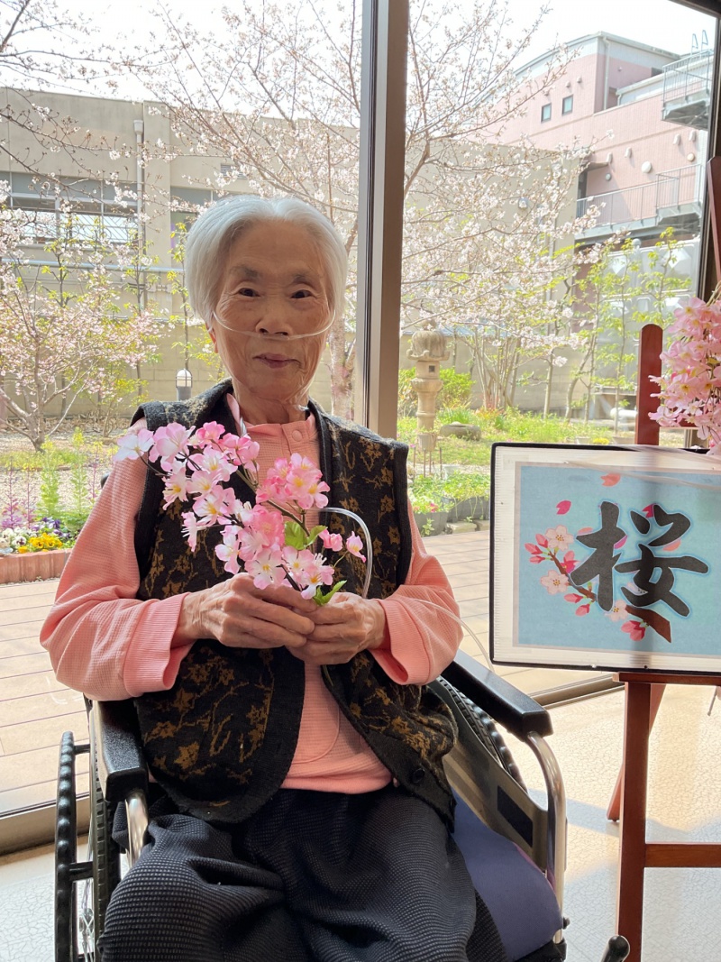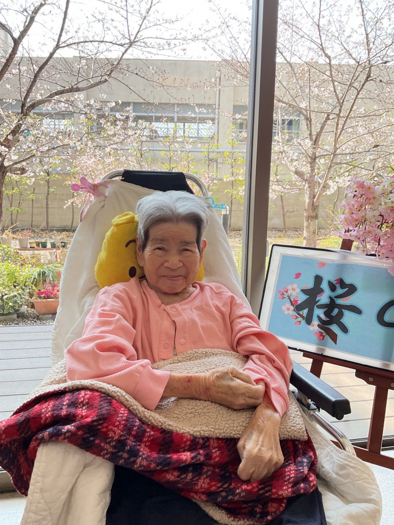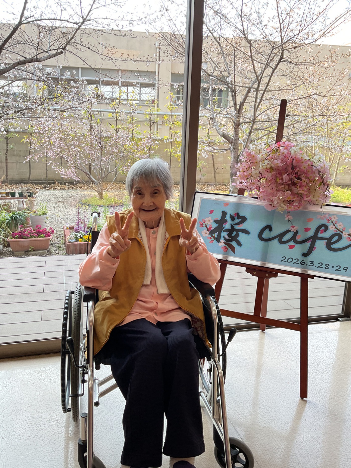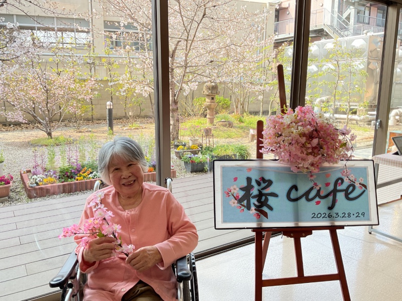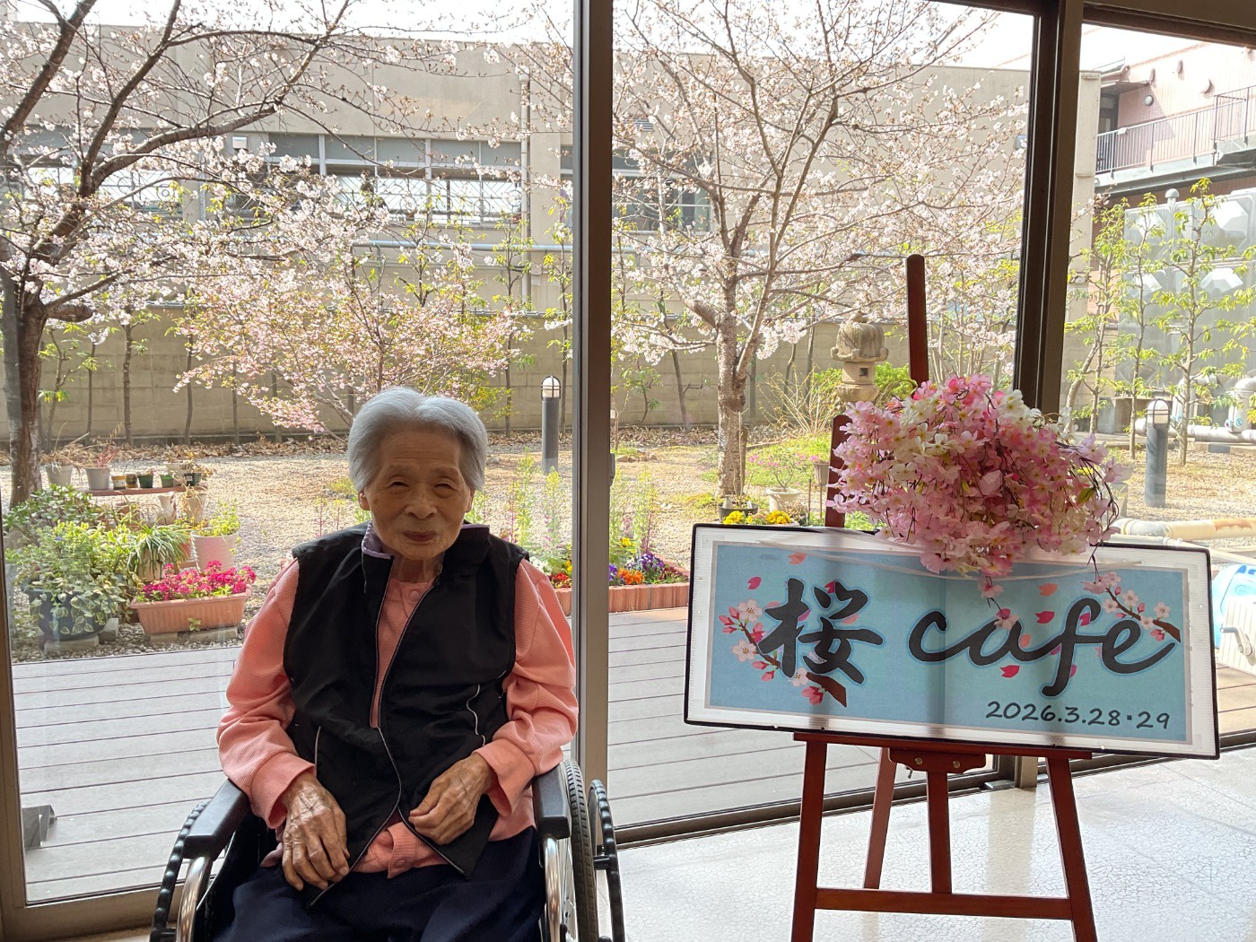 桜はまだ満開前でしたが、先月末に中庭が見えるロビーで桜カフェを開きました。 お茶の前に記念撮影をさせていただきましたが、皆さん素敵な笑顔をたくさん見せてくださいました。
