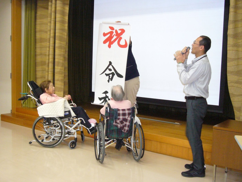 5月1日に新元号「令和」になりましたね。楠清里苑では式典を開き、皆さんでお祝いしました。