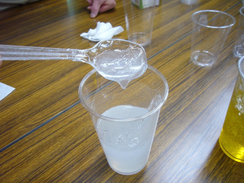 先生が各テーブルを廻り、トロミの状態を確認しながらコツを教えて下さいました。