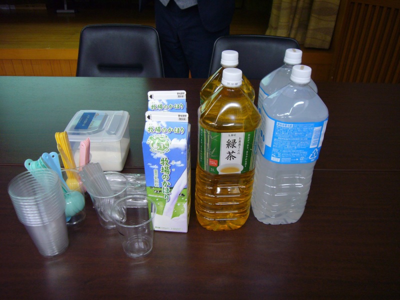 それぞれの飲料に「薄い・中間・濃い」の3種類ずつのトロミをつけました。職員もそれぞれ飲み比べて喉ごしを体験しました。