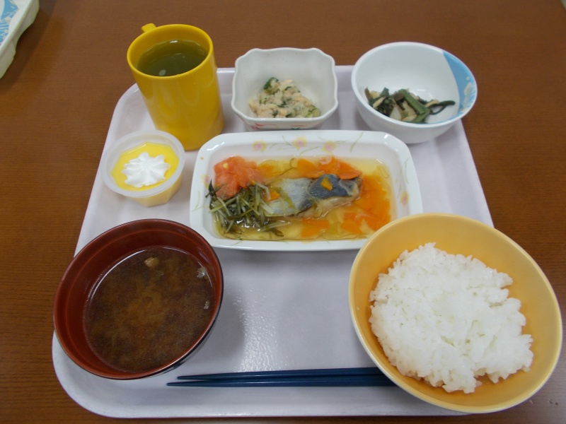 本日の昼食は、アジの和風マリネ、わらびの炒め煮、味噌汁 ツナとキュウリのおろし和え、マンゴープリンでした。 アジは年中食べることができますが、この時期は、小アジ が釣れます。釣ったばかりの魚はとてもおいしいです。 釣り好き相談員。