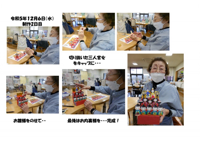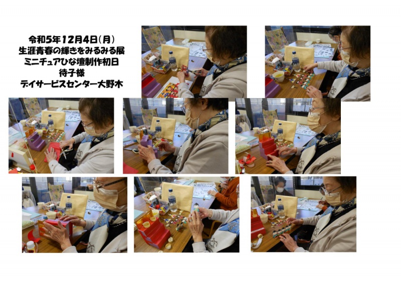 デイサービスセンター大野木 12/4 生涯青春の輝きをみるみる展 作品制作 ミニチュアひな壇