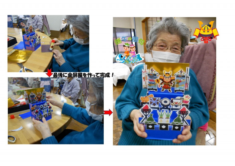 デイサービスセンター大野木 12/12 生涯青春の輝きをみるみる展作品制作 ミニ端午の節句飾り
