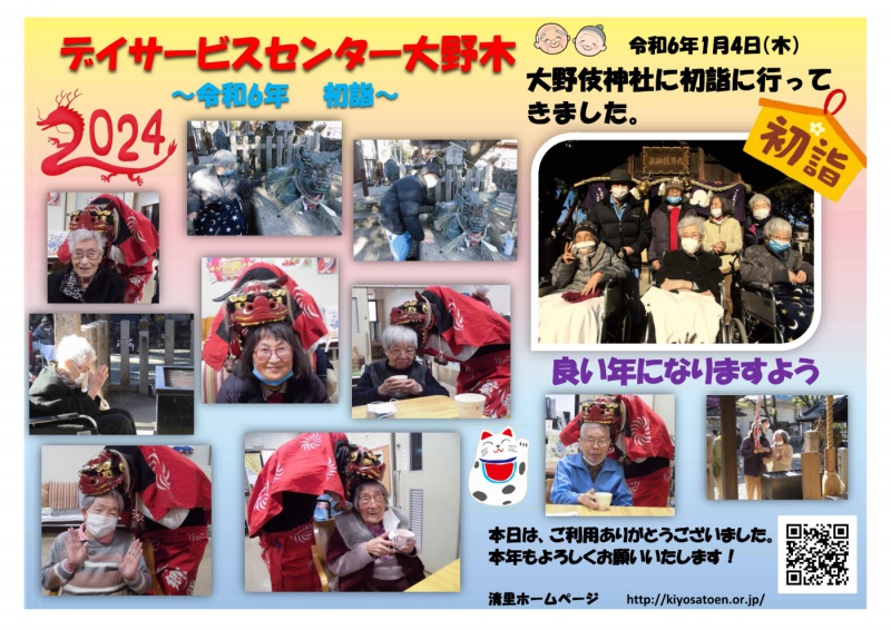 デイサービスセンター大野木 1/4 大乃伎神社へ初詣&新年記念撮影