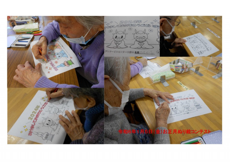 デイサービスセンター大野木 1/5 お正月ぬり絵コンテスト開催中!