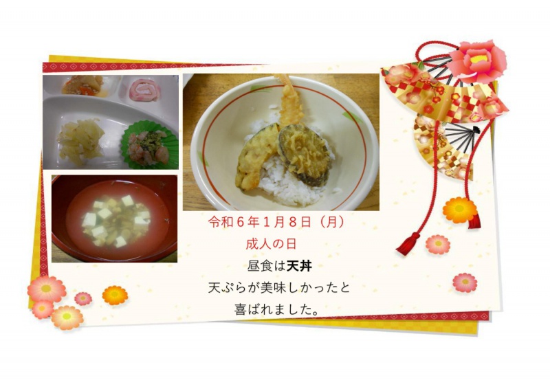 デイサービスセンター大野木 1/8 成人の日の昼食は天丼