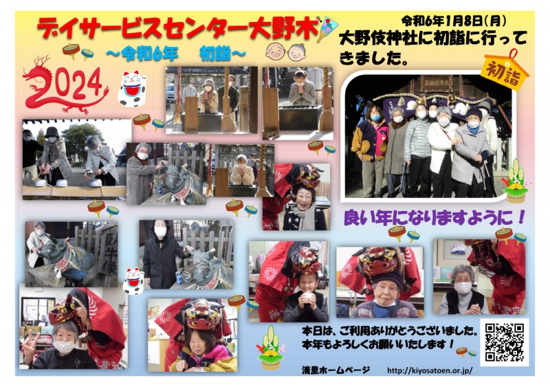 デイサービスセンター大野木 1/8 成人の日に大乃伎神社へ初詣