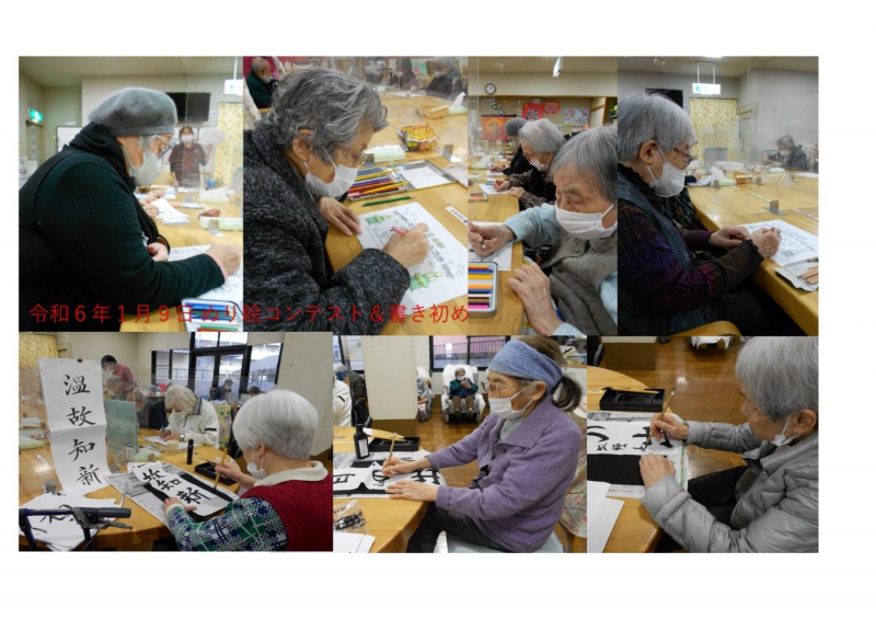 デイサービスセンター大野木 1/9 書き初め&お正月ぬり絵コンテスト