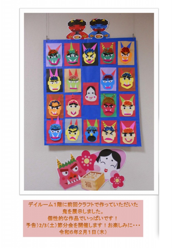 デイサービスセンター大野木 2/1 節分にむけての作品を展示しました!