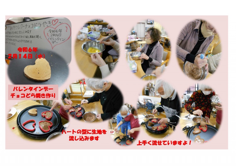 デイサービスセンター大野木 2/14 おやつレク ハートチョコどら焼き