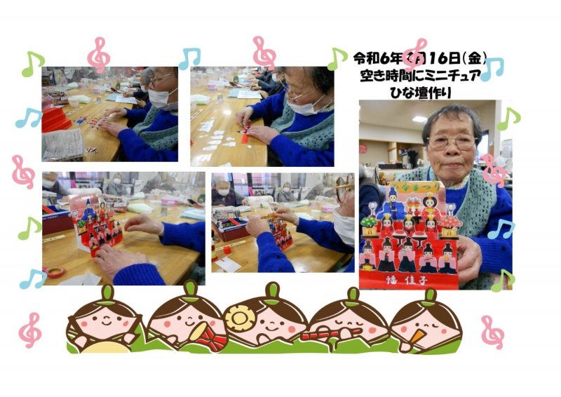 デイサービスセンター大野木 2/16 自由時間にミニチュアひな壇作りました!