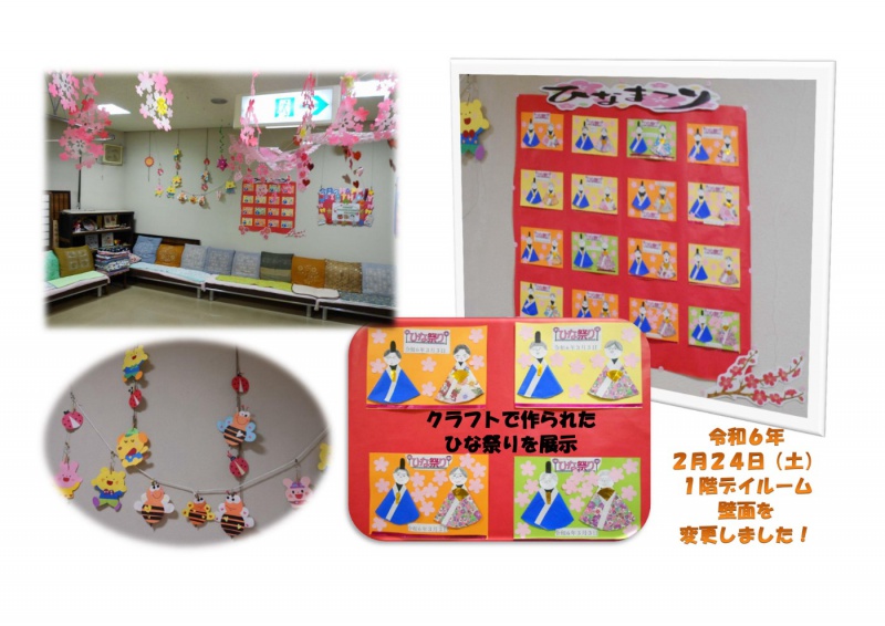 デイサービスセンター大野木 2/24 クラフト作品『ひな祭り』展示