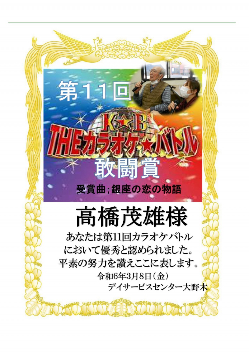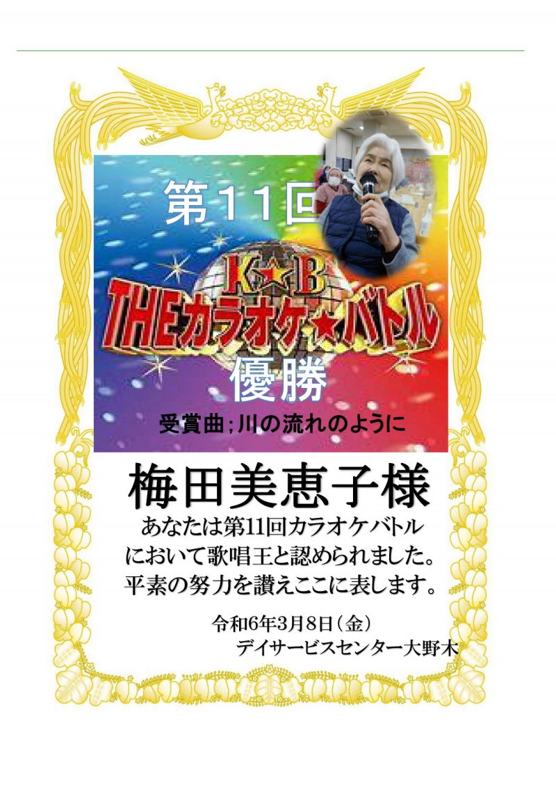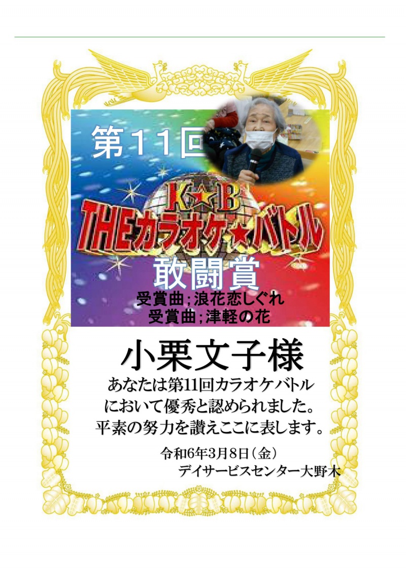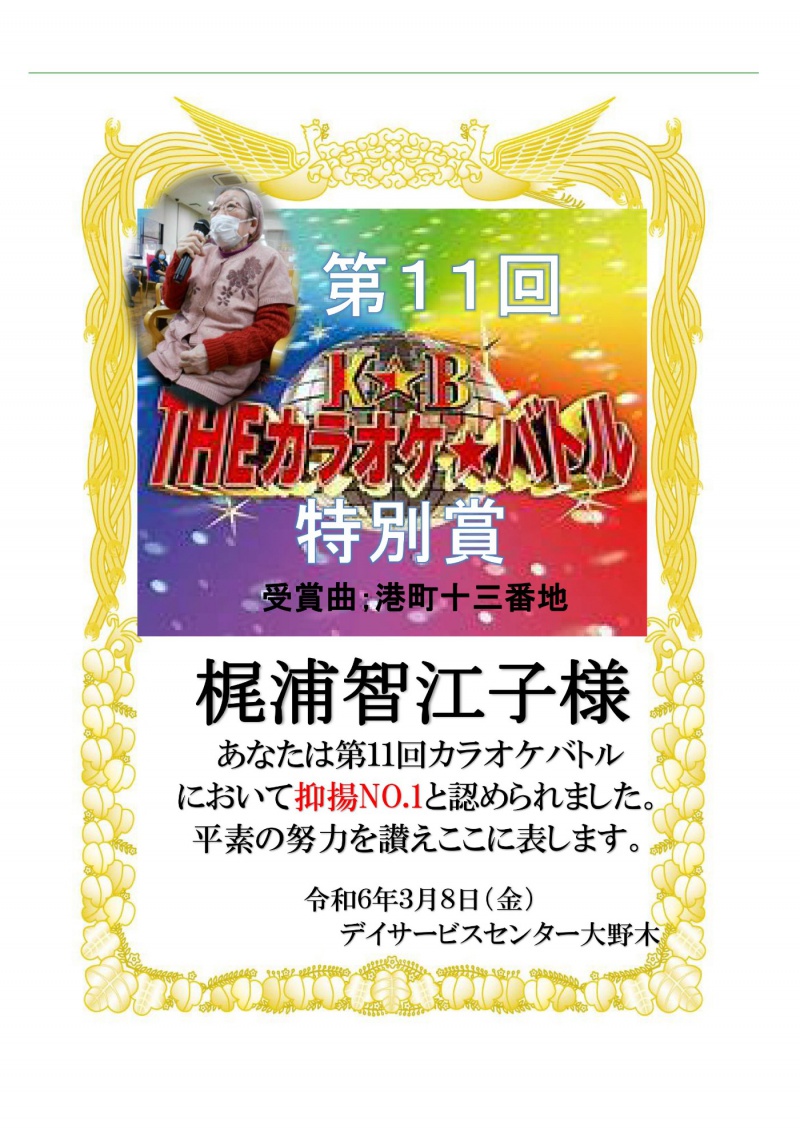 デイサービスセンター大野木 3/8 第11回カラオケバトル歌唱王決定戦
