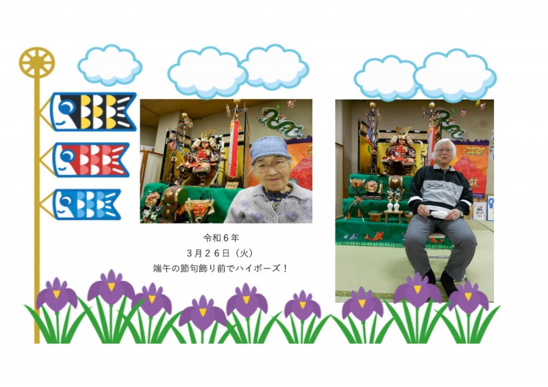 デイサービスセンター大野木 3/26 端午の節句飾り前でハイチーズ!