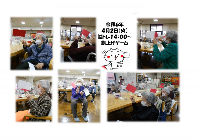 デイサービスセンター大野木 4/2 脳トレレク 旗上げゲームが大人気!