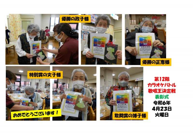 デイサービスセンター大野木 4/23 第12回カラオケバトル笑顔の表彰式