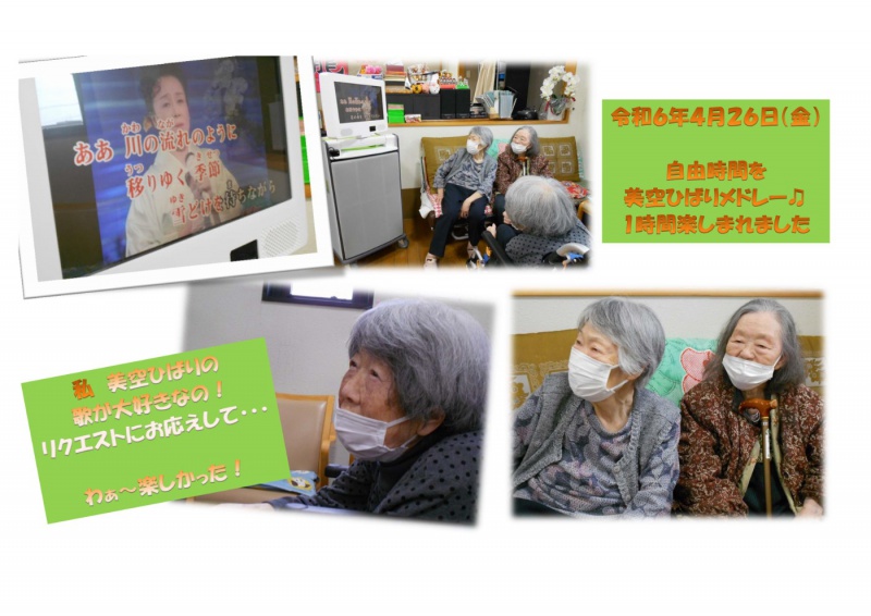 デイサービスセンター大野木 4/26 自由時間に美空ひばりメドレー