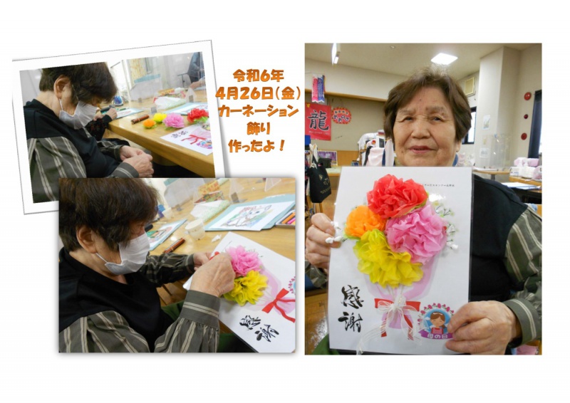 デイサービスセンター大野木 4/26 カーネーション私も作る!