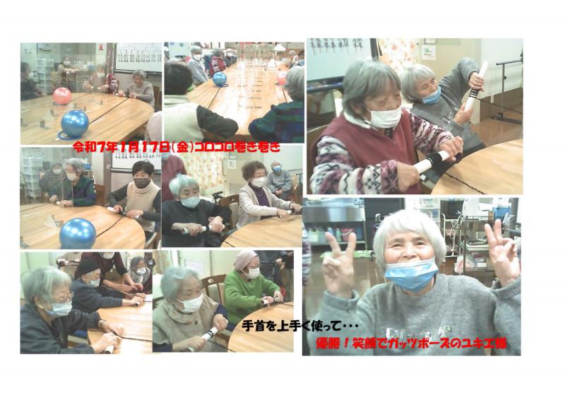 コロコロ巻き巻きのレクリエーションで優勝されガッツポーズの笑顔がステキです。デイサービスが楽しくて来るのが楽しいと仰られうれしい限りです。ありがとうございます!