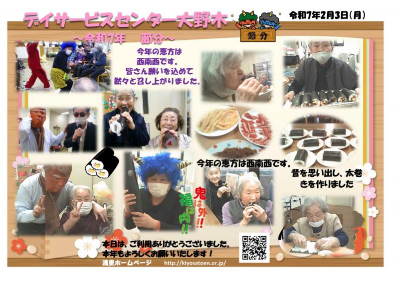 デイサービスセンター大野木 ご家族様へのお便り「節分会」