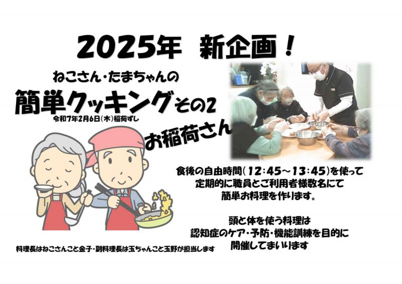 デイサービスセンター大野木 ねこさん玉ちゃんの簡単クッキング「おいなりさん」