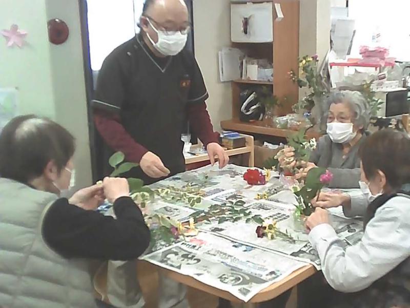2/27昨日好評のフラワーアレンジメント第3弾を開催しました。ご利用者様の喜ばれる声よりご家族様もいっしょに参加され、来訪中のケアマネージャー様も見学されました。