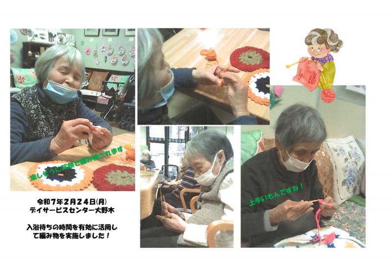 デイサービスセンター大野木 入浴待ちに編み物が人気!