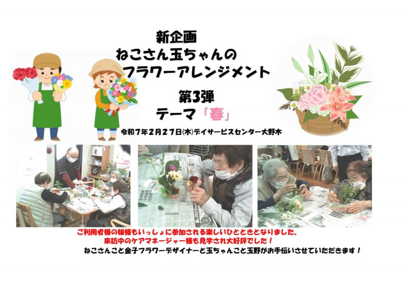 デイサービスセンター大野木 ねこさん玉ちゃんのアレンジメントフラワー第3弾