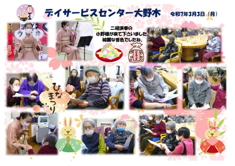 デイサービスセンター大野木 ひな祭り会 ご家族様へのお便り