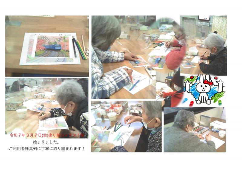 デイサービスセンター大野木 ぬり絵コンテスト「桜」始まる!