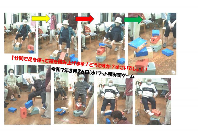 デイサービスセンター大野木 新規レク:フット積み荷ゲームで下肢筋力UP!