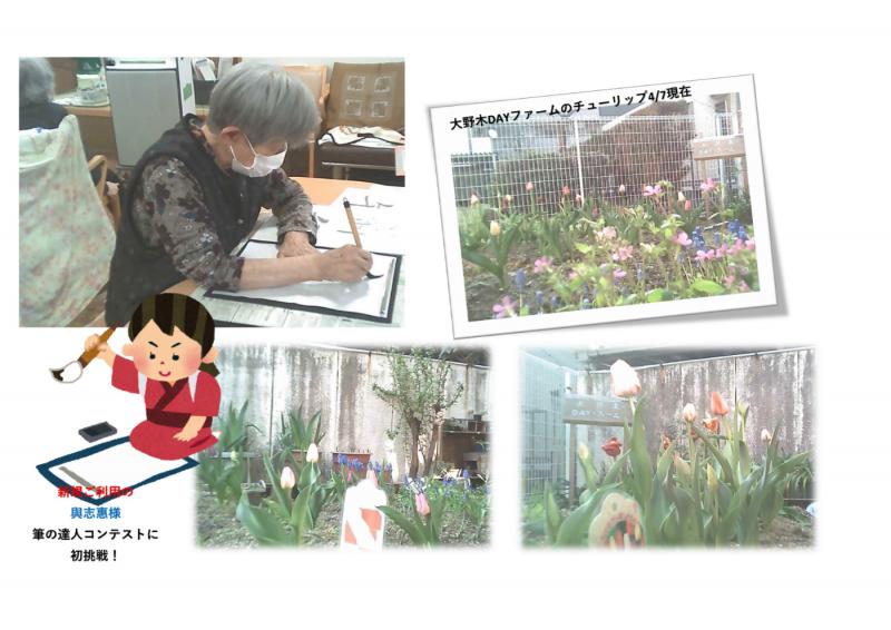 デイサービスセンター大野木 筆の達人に初挑戦!~チューリップ続報