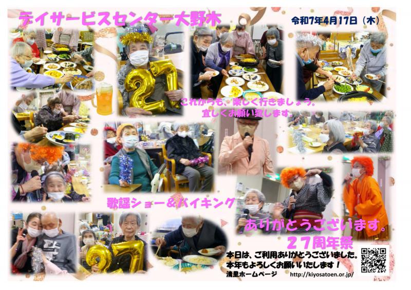 デイサービスセンター大野木 27周年祭初日歌謡ショー&バイキングご家族様へ