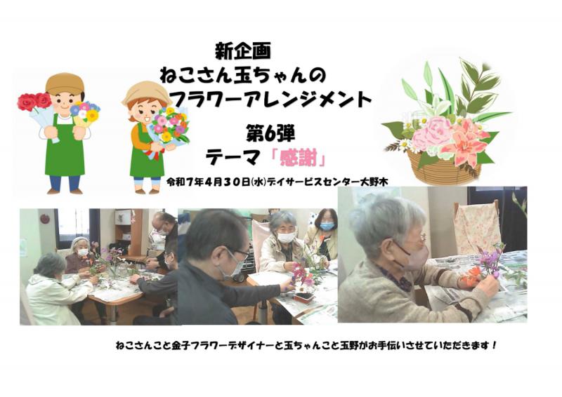 デイサービスセンター大野木 ねこさん玉ちゃんのアレンジメントフラワー第6弾「感謝」