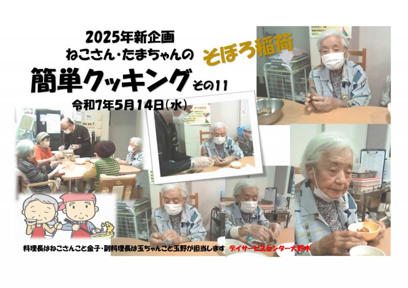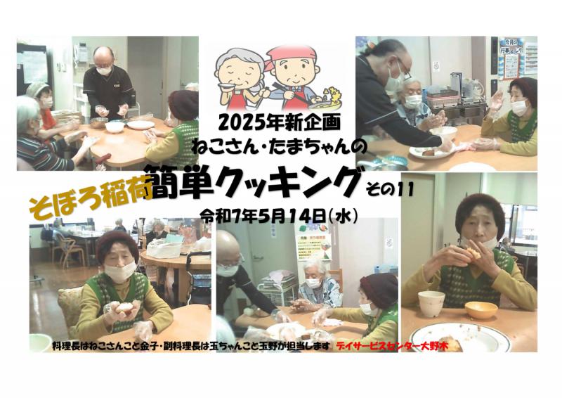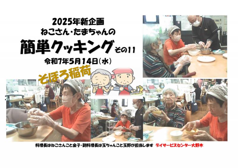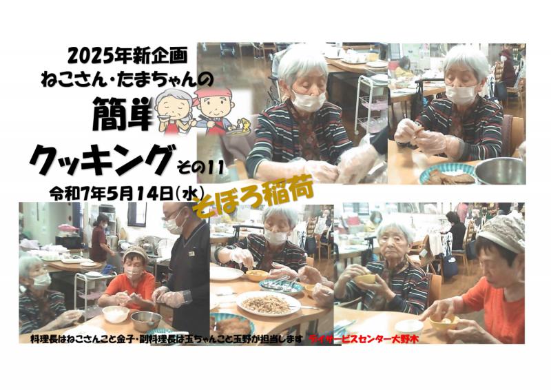 デイサービスセンター大野木 簡単クッキング11「そぼろ稲荷」ご様子をご家族様へ