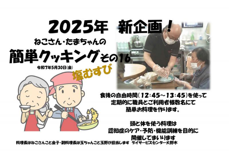 デイサービスセンター大野木 ねこさん玉ちゃんの簡単クッキング16塩むすび