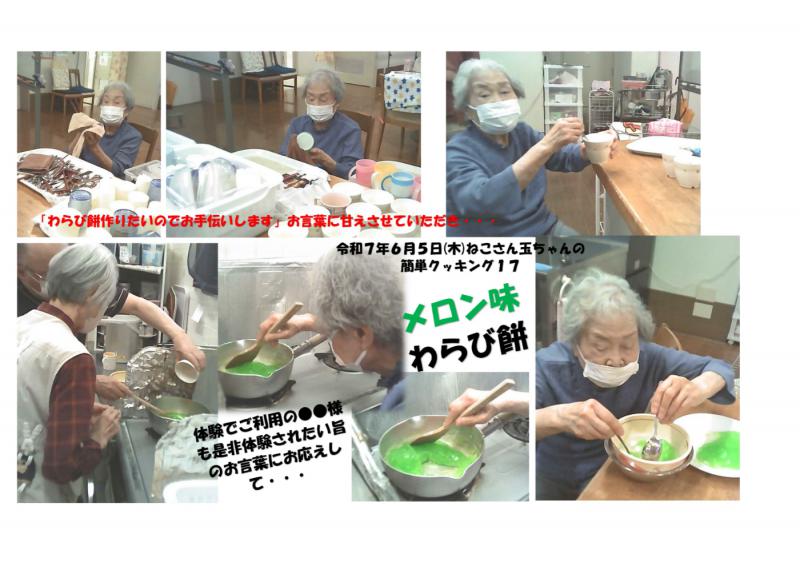 デイサービスセンター大野木 ねこさん玉ちゃんクッキング18メロン味わらび餅