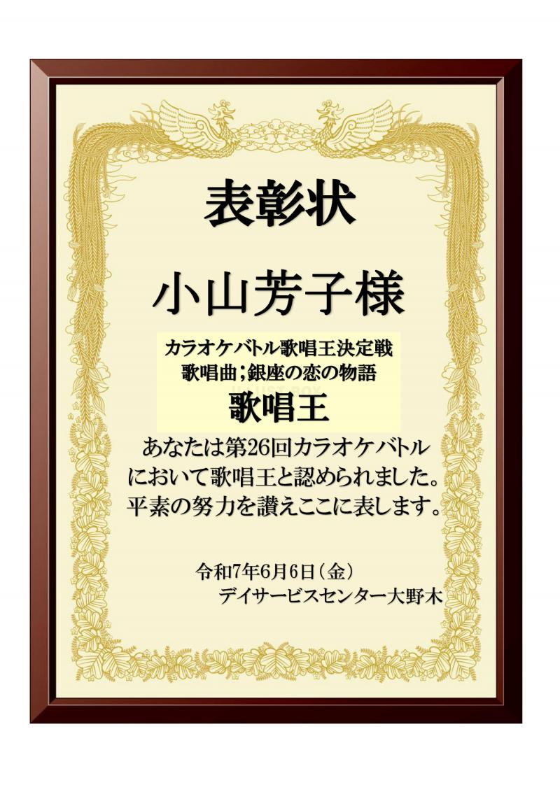 デイサービスセンター大野木 恒例の26回カラオケバトル