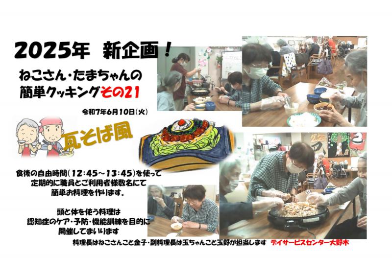 デイサービスセンター大野木 ご家族様へのお便り クッキング21