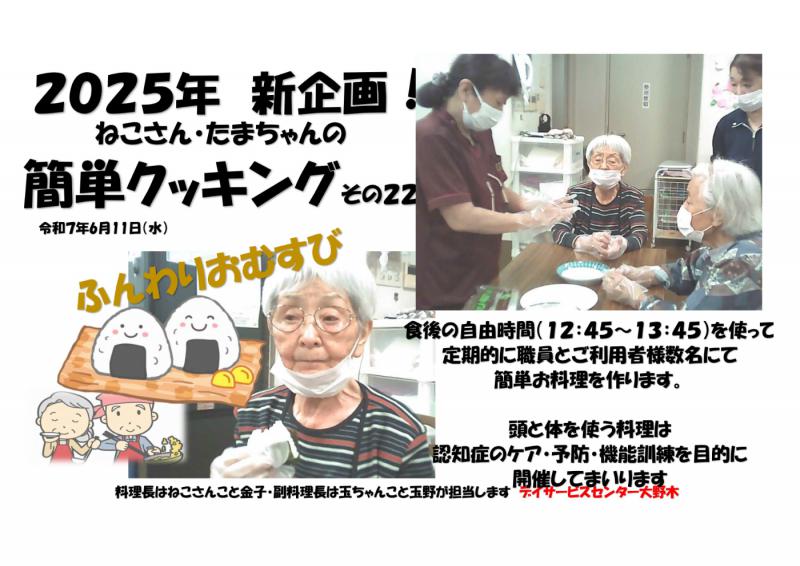 デイサービスセンター大野木 簡単クッキング22ご家族様へのお便り