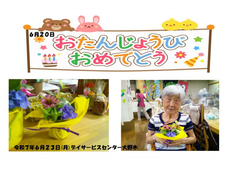 デイサービスセンター大野木 悦子様お誕生日おめでとうございます!